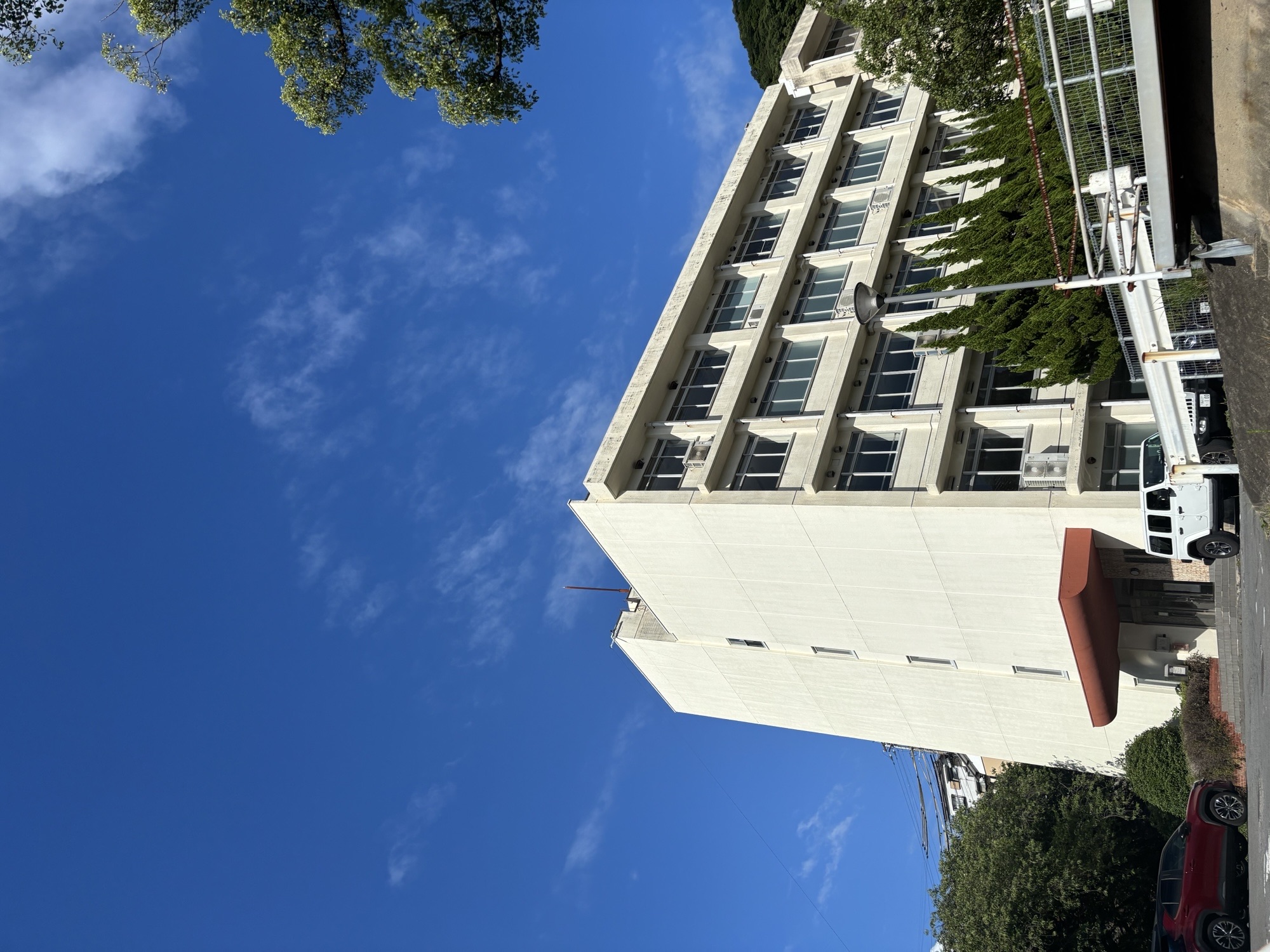 現在は、掲載写真からさらに作業が進み、校舎の周りに足場が組まれています。